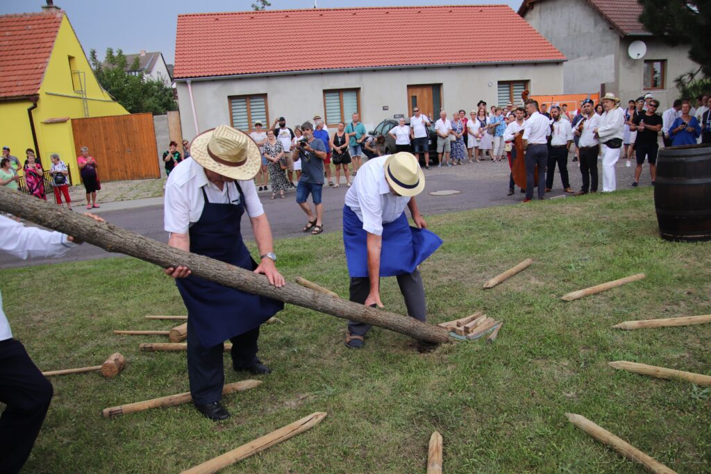 Letos to je přesně 10 let, kdy se v Tasovicích konalo první Zarážení hory. Tento nultý ročník byl tehdy pod taktovkou znojemského Spolku přátel hroznové kozy, který se o obnovu této pradávné tradice na Znojemsku snaží již mnoho let. Od následujícího roku 2016 převzal otěže této slavnosti Spolek vinařů svatého Klementa, který letos v sobotu 16. srpna 2025 uspořádal již desátý ročník Zarážení hory v Tasovicích. Na přípravě se podílí kromě samotných členů spolku také mnoho sponzorů a dobrovolníků a díky nim se podařilo vytvořit krásnou a hojně navštěvovanou folklórní akci, která každoročně přiláká velké množství návštěvníků doslova z celé republiky. Zahájení proběhlo u Tasovického vinařství za účasti horenské rady v čele s letošním perkmistrem Ing. Františkem Houštěm a místních pěveckých souborů. Nejvzácnější relikvii této slavnosti Glejt vinařů tasovických z roku 1402 přijel na koni přečíst sám Hynek z Kunštátu, řečený Suchý čert s dámským doprovodem. Následovalo pozvání na ochutnávku vín Tasovického vinařství a poté se průvod přesunul do kostela sv. Klementa, kde pan farář otec Jan Sokulski požehnal vinařům a také kyticím s devaterem bylin a horám, které chrání úrodu ve vinohradech od pohrom a nemocí. Poté proběhla na náměstí hlavní část celého obřadu, kde byly přečteny vinařské artikule a přítomní hotaři složili přísahu strážců vinohradu. Na to už mohla být zaražena samotná hora a vzácnými hosty zatlučeno 12 kolků jako symbolů dvanácti měsíců vinařovy práce. Na závěr zazněla slavnostní myslivecká salva a poté pískání přítomných dětí na píšťalky, které značí, že je hora zaražena a symbolicky odhání zlé síly, bouřku a hlavně špačky. Bouřku se dětem opravdu podařilo odehnat a celý den nás doprovázelo nad očekávání krásné počasí. Osvěžující zastávky po cestě na krátké občerstvení obstarali tentokrát v obecním sklepě krhovičtí vinaři a také Miroslav Grolig a Ivan Bohatka. Od nich se průvod přesunul do vinohradu, kde byla zaražena také druhá hora. Zde se zbrojnošům podařilo polapit zloděje, kteří na svých kolech porušili zákaz vstupu do vinohradu a byly u nich nalezeny ukradené hrozny. Za to je čekal rozsudek Horenského súdu a tvrdé potrestání z rukou samotného Hynka z Kunštátu, který dodržel svou divokou pověst a jako rabiát a mordýř určitě všechny další zloděje od podobných kousků nadobro odradil. Poprvé se ukončení akce konalo přímo ve vinohradě, kde byly pro návštěvníky připraveny až do noci zábavné soutěže s folklorní tématikou, jako mlácení obilí cepy, sekání na přesnost a hod vinnými hlavami do koše, za což vítězové obdrželi krásné ceny na památku. K dispozici bylo bohaté pohoštění a skvělý hudební doprovod již tradiční Neoveské cimbálové muziky, která hrála ještě dlouho po setmění. Byl to krásný den plný krojů, pěkné písničky, dobrého vínka a radosti. Jménem Spolku svatého Klementa moc děkujeme všem organizátorům, pomocníkům, hodové chase, návštěvníkům a hlavně sponzorům, zejména obcím Tasovice a Hodonice a Tasovickému vinařství za uspořádání tohoto jubilejního Zarážení a těšíme se na příští rok.
